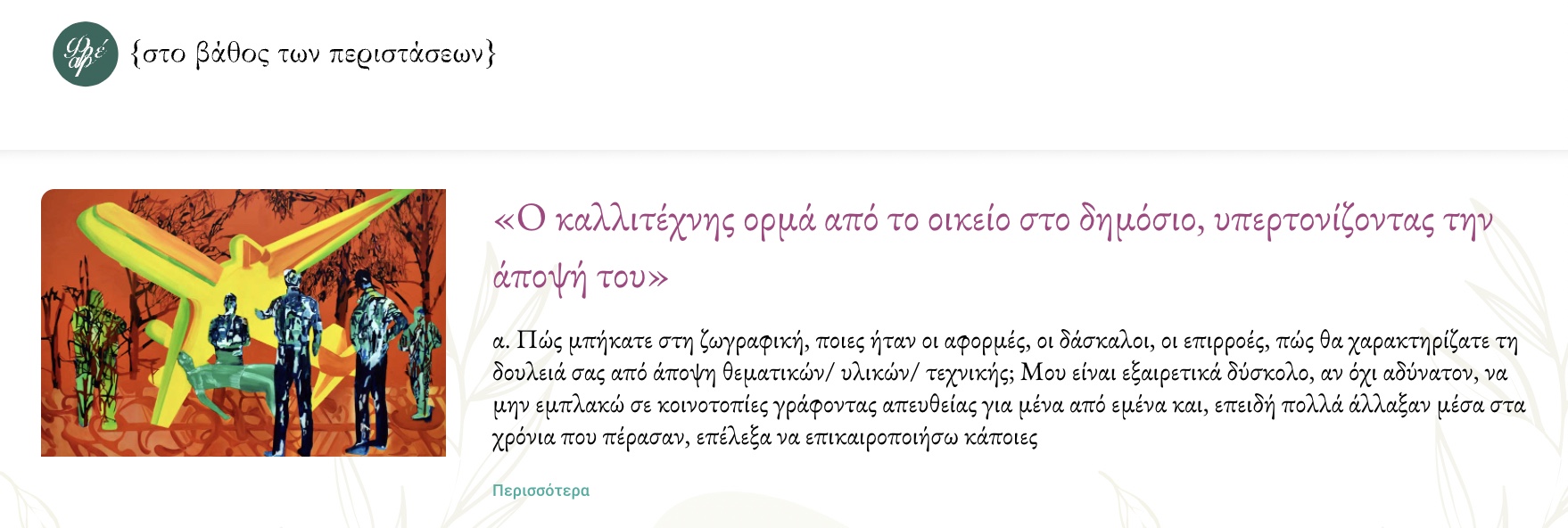 Μου είναι εξαιρετικά δύσκολο, αν όχι αδύνατον, να μην εμπλακώ σε κοινοτοπίες γράφοντας απευθείας για μένα από εμένα και, επειδή πολλά άλλαξαν μέσα στα χρόνια που πέρασαν, επέλεξα να επικαιροποιήσω κάποιες σκέψεις με αφορμή την ζωγραφική μου: