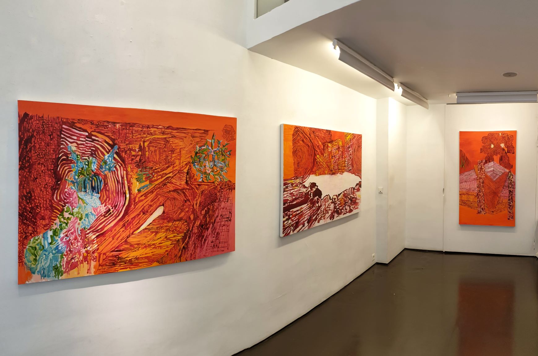 The works are painted from 2017 to 2019.These works are made with oil colors on canvas,but also pencil or ink on paper.